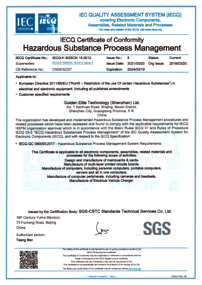 精英電腦透過檢視廠內製程及控管原物料的方式,由供應商源頭落實供應鏈管制,以建立綠色採購標準程式;藉由不定期委外零件檢測,確保公司產品符合相關環保指令規定。對於有害物質之管理,精英電腦透過 認證確保良好的管理程式良好,以獲得客戶之信賴。
